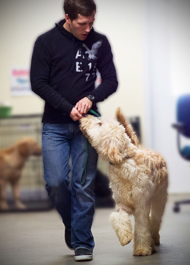 - Let go of that leash! I often make new dog handlers put the loop of the leash around their hand and then put their hand in their pocket. What this does is makes you, the dog handler, give the dog the full length of the leash. This allows the dog the choice to stay with you or run ahead (which gives YOU the opportunity to reward good choices.) When you force a dog to walk next to you, you’re not actually building value for loose-leash walking. You’re simply inhibiting what the dog actually wants to do. This will not make the dog want to stay next to you; it will most likely make him want to pull ahead harder.