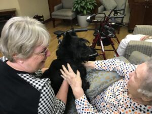 A therapy dog is trained to provide emotional support and comfort to people in need, often visiting hospitals, hospices, nursing homes, grief camps, cancer camps, orphans and schools. They are comfortable in a variety of settings and with a variety of people. Therapy dogs come in all sizes and breeds. These dogs must be friendly with strangers, able to handle high levels of distraction, and understand personal boundaries.